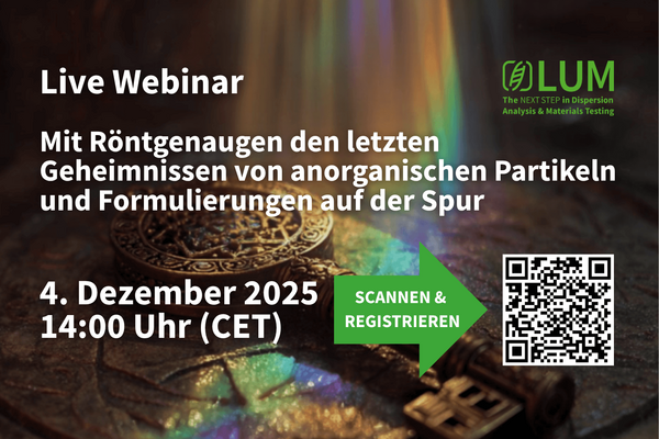 LUM GmbH lädt Sie herzlich zu einem 30-minütigen Live-Webinar ein und präsentiert den neuen Gravity Separation & Particle Analyser LUMiReader® X-Ray 440 – eine innovative Lösung für die Analyse und Charakterisierung anorganischer Partikel und Formulierungen.